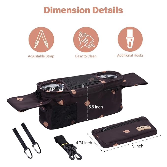 • Fits All Strollers – Universal Compatibility: Adjustable velcro straps and carabiner hooks make it easy to attach to any stroller model, from jogging strollers to travel systems.