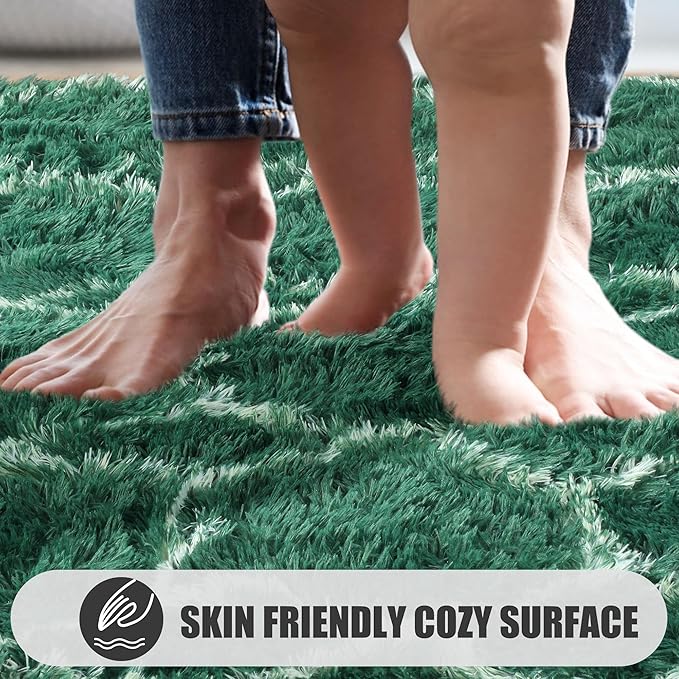 ONASAR Area Rugs for Living Room Bedroom, 5x8 Washable Fluffy Dark Green and White Rug, Geometric Boho Soft Plush Shaggy Fuzzy Floor Carpet for Nursery Kids Girls Boys Teen Dorm Home Decor Aesthetic