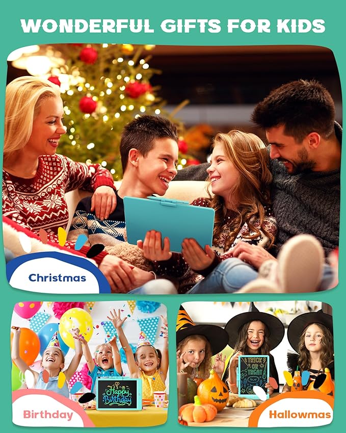 - KEEP NOISY KIDS SLIENT: Are you facing the confusion how to quiet a noisy child?LCD Writing Tablet easily allows children to quietly immerse themselves in the rainbow world. The doodle board also can be used in multiple places: airplane, car, restaurant, sofa, etc. The perfect travel essentials for kids!!!