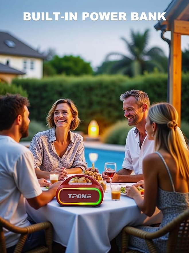 TPone Portable Bluetooth Speaker, 30W (Peak) Wireless Speaker for Outdoor, Up to 12H Playtime, IPX5 Waterproof with Light, TWS Pairing, for Home/Party/Outdoor/Beach, Birthday Gift (Red)