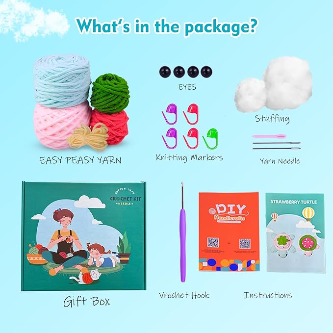 - 【Extra Yarn Content】We've prepared a rich variety of yarn for crocheting these crochet turtle, with an extra 40% of yarn for each color, ensuring an ample supply of threads. amigurumi trutle knitting kit enables you to create your knitted cat in a vibrant array of colors, offering you more freedom and creativity in your crafting.