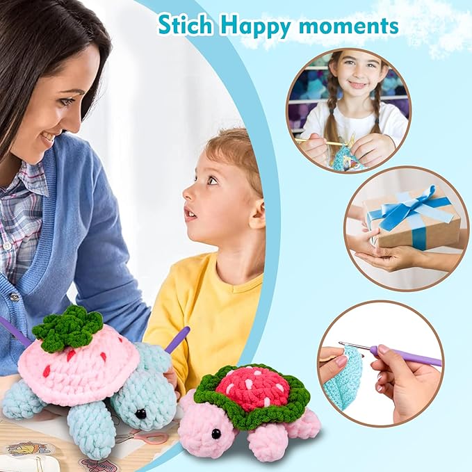 Crochet Kit for Beginners,Crochet Starter Kit with Step-by-Step Video Tutorials,DIY Crochet Animal Kits for Adults Kids,Complete Kit Included(2PCS Turtle)