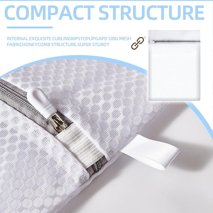- Design: Our high quality rust-proof zippers have a ribbon hanger tag above them for easy hanging, and the zipper comes with an automatic lock and smart zipper protection to prevent the bag from opening during washing and drying cycles. You will have a quiet laundry experience.