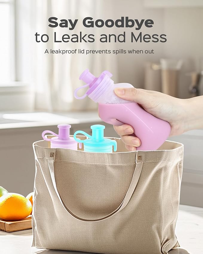 - Nutrition Anytime, Anywhere: These reusable squeeze pouches are ideal for homemade purees, applesauce, yogurt, and more. Perfect for on-the-go meals, outings, and convenient snacking. The leakproof design prevents spills, keeping meals mess-free