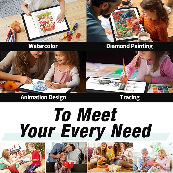 - 【Multiple Uses】Zocelight light Table, suitable for diamond painting,drawing,tracing,animation,sketching,calligraphy,sewing projects,Weeding Vinyl,architectural design,X-ray viewing,and more.art drawing supplies for kids and artists,also the amazing gift for Children's Day, Christmas, birthdays or any other holidays.