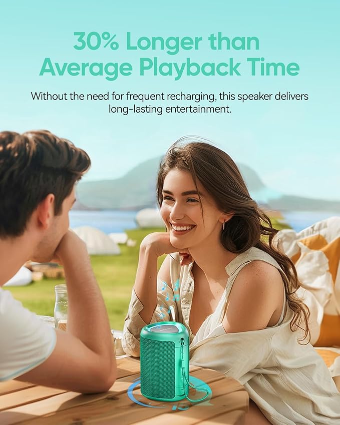 • 【Immersive Sound】: Experience stunning 15W(20W peak) sound in a compact design. With zero distortion audio, this Bluetooth speaker delivers loud highs, crisp midrange, and full bass for an immersive listening experience. With up to 15 hours of playtime on a single charge, enjoy your favorite tunes all day and night without interruption