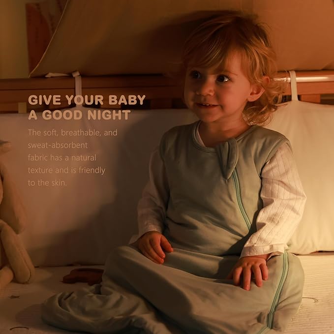 • 【Sleeveless】Baby sleep sack should be sleeveless to aid the heat loss and air circulation. Babies sleeping under traditional blankets rarely sleep with their arms inside. Sleeveless design reduces the risk of overheating. Your baby is covered and warm all night. No more kicked off covers means your baby sleeps more comfortably.