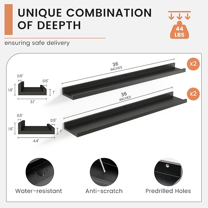 - 【Easy to Install】FLYJOE picture ledge shelves are quick and easy to install! Each set comes with pre-drilled holes and all necessary hardware, including a mini level for perfect alignment. With simple instructions, you can have your shelves up in minutes, allowing you to start decorating right away