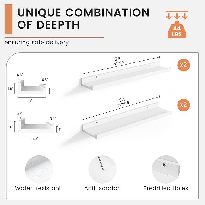 - 【Easy to Install】FLYJOE picture ledge shelves are quick and easy to install! Each set comes with pre-drilled holes and all necessary hardware, including a mini level for perfect alignment. With simple instructions, you can have your shelves up in minutes, allowing you to start decorating right away