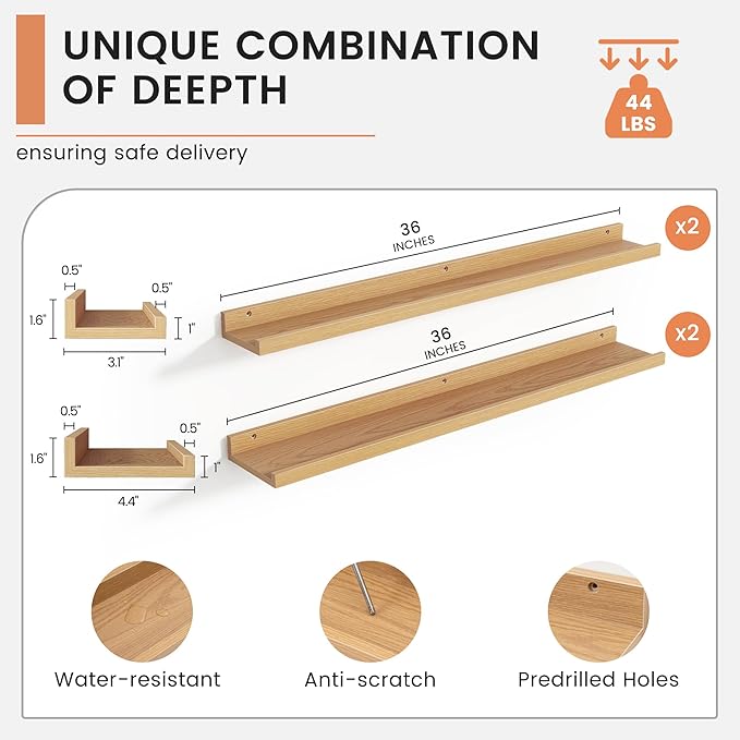 - 【Easy to Install】FLYJOE picture ledge shelves are quick and easy to install! Each set comes with pre-drilled holes and all necessary hardware, including a mini level for perfect alignment. With simple instructions, you can have your shelves up in minutes, allowing you to start decorating right away