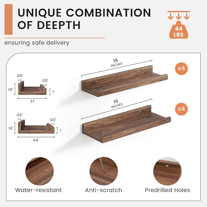 - 【Versatile and Multi-Functional】These shelves aren’t just for photos! FLYJOE ledge shelves can be creatively used as kids' bookshelves, display shelves for collectibles, spice racks in the kitchen, or even over-the-toilet storage in the bathroom. Their adaptability makes them a practical choice for any room in your home