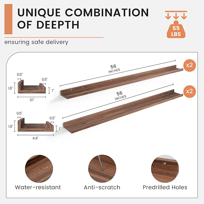 - 【Picture Ledge Perfect for Display】FLYJOE picture ledge shelves for wall turn your walls into a stunning photo gallery! These spacious shelves are ideal for showcasing a variety of picture frames in one secure place. With a thoughtful protective lip, you can display everything from photos to collectibles without worrying about them falling off