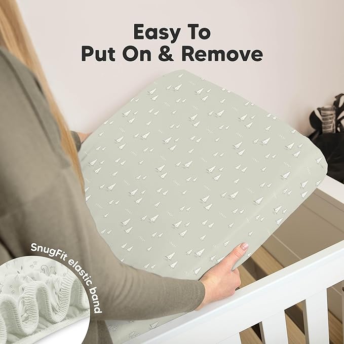 - Easy To Put On - Our baby sheets for crib use SnugFit Tech, a smart fabric knit that stretches effortlessly for quick fitting and removal of the toddler bed sheets. No more struggling with rigid fabric!