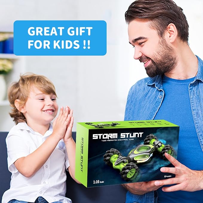 - All-Round Drift & Cool Stunt:4WD High-Tech gesture sensing rc stunt car can drive and drift in all directions, 360° rotation, 45° climbing, double-sided body flip, Double-sided Driving can easily pass obstacles,Cool functions and unlimited fun give children wonderful operation experience and visual effects.