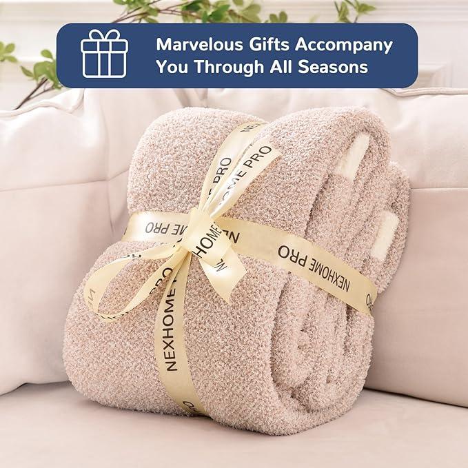 NEXHOME PRO Super Soft Throw Blankets for Couch, Reversible Warm Blanket Cozy Knit Blankets for Women, Fuzzy Plush Lightweight Throws for Sofa, Bed, Picnic, Heather Terracotta, 50 x 60 inches