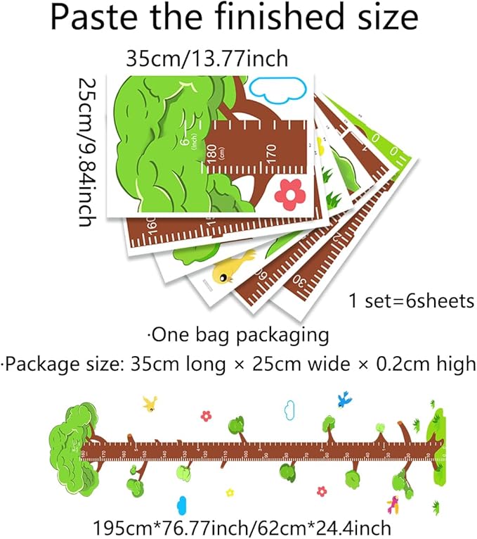 Creative Height Ruler: It is not only wall decor decal for kids room, but also a record chart for the growth of boys and girls. The scale start from 10cm and ends at 180cm.