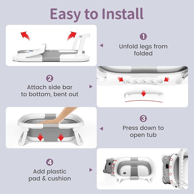 Space-Saving Fold: Unique folding design collapses flat for easy storage, making this Kerbwry baby tub suitable for small homes or travel