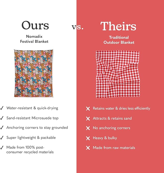 Nomadix Festival Blanket - Perfect for Picnics, Camping, & Lawn Seating - Plush Top & Water Resistant Base - Made with Post Consumer Recycled Materials - Hula Multi - 60x70