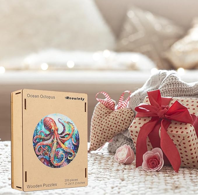 Wooden Puzzle for Adults 500pcs, Octopus Wooden Jigsaw Puzzles, Unique Shape Animal Adult Puzzles, Irregular Wood Puzzles Best Gift for Adults and Kids Family Game(15.6 * 15.6 in)