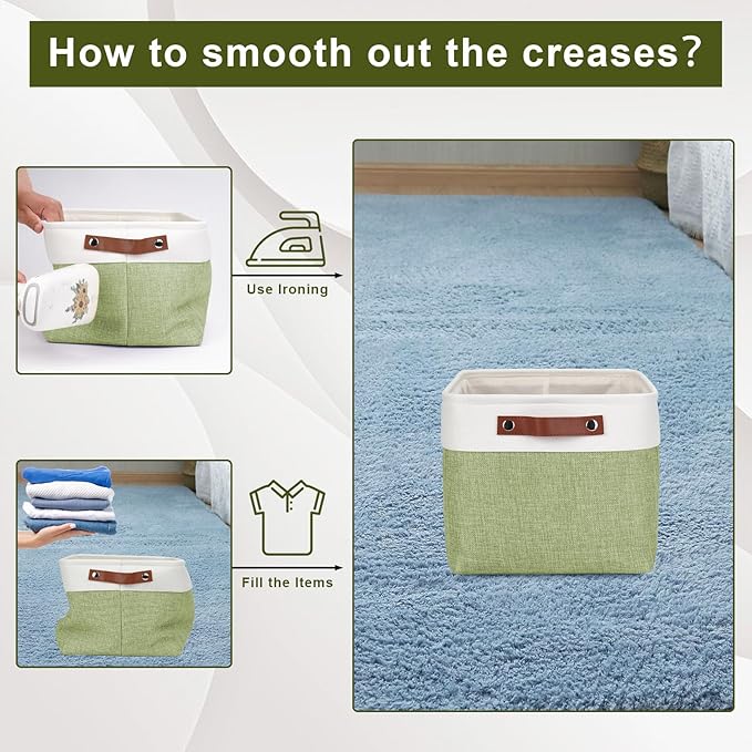 - 【Maintenance & Care Tip】 - Collapsible design for space saving. Our foldable baskets comes in a compression packing which may result in wrinkled storage bin during the long transit. Get rid of the wrinkles by either stuffing the fabric storage bins with blankets and pillows for a few days or steam iron them at low-heat setting. The organization baskets are easy to clean, you can dust the basket with a soft cloth with light soapy water when needed. Not recommended to machine wash.
