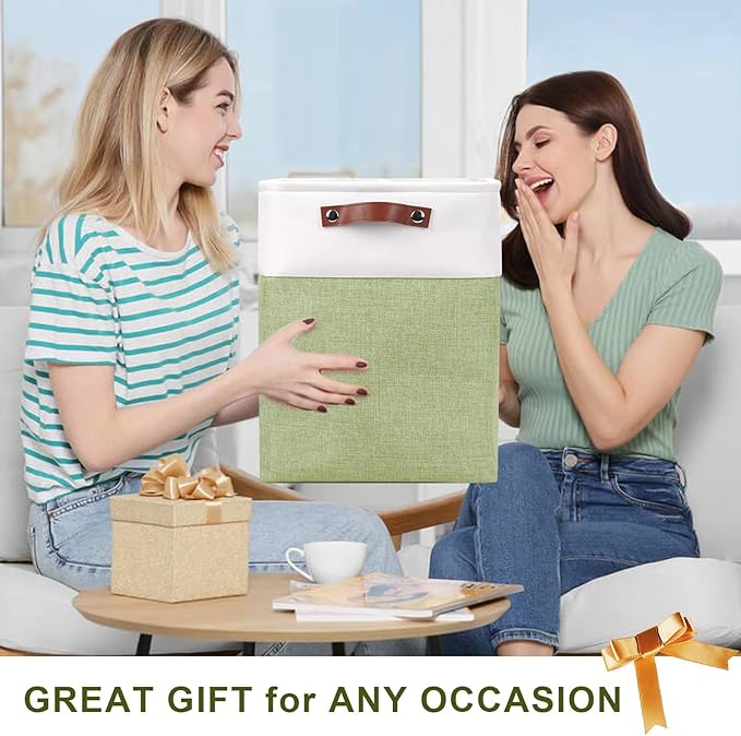 Large Fabric Storage Baskets | 50L Storage Bins, Decorative Linen Closet Baskets with Handles for Organizing, Shelf, Toys, Clothes, Home, Office, Nursery, 17x12x15Inches (Green&White)