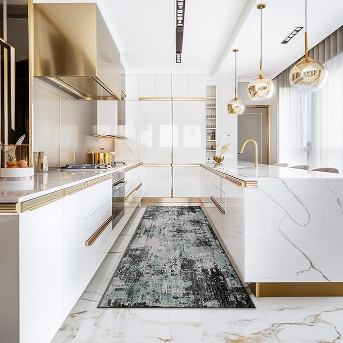 - Modern Abstract Rug Print Pattern Rug: The modern abstract aesthetic design is digitally printed, and the details can't be replicated by hand. It is a beautiful room decor that adds color to your home. The moderate thickness also allows this area rug to be easily placed behind the door without affecting the opening. You can place it anywhere you like, rugs for living room, rugs for dining room, kitchen, office, bedroom, laundry room, hallway, entryway etc.