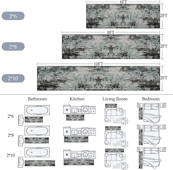 Washable Area Rugs 2'x6' Non-Slip Modern Abstract Soft for Living Room Entryway Bedroom Nursery, Print Pattern, Blue Black Teal
