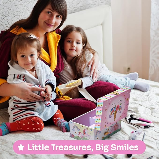 Magical Musical Experience: Features a delightful Unicorn doll that twirls to the tune of "The Beautiful Dreamer" when opened, making it a memorable gift that encourages a tidy space with a touch of magic