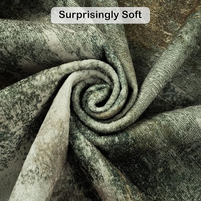 Kelarea Living Room Rug, 5x7 Rug Modern Abstract Washable Rugs Green Faux Wool Vintage Carpets, Non Slip Rug for Bedroom, Dining Room, College Dorm, Kids Playroom, Home Office
