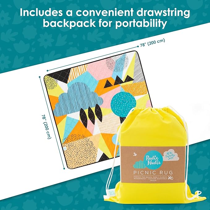 - Jumbo size for family fun: Measuring a generous 78” x 78” (200 x 200 cm), the picnic blanket offers ample space for the entire family to relax and enjoy. It's ideal for group picnics, beach days, or any outdoor activity needing a large, comfortable seating area.