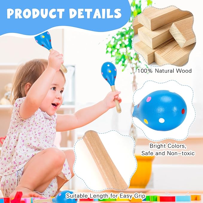 • High quality wooden materials: These maracas are made of 100% natural wood, which is not easily damaged, safe, non-toxic and durable; It will not cause harm to the human body and is the perfect choice for children to explore rhythm and music through play