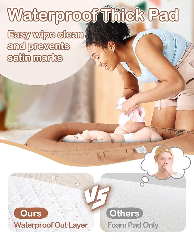 - π[π©πππππππππ ππππππ πππ πΊπππππ πππ πͺππππππ] The lounger features breathable cotton fabric as the cover, super soft and breathable polyester fiberfill for the bumper filling, and 3D breathable polyester for the mat filling. It adopts a bionic design to imitate mom's comfy womb, providing a comfortable and soothing environment for the baby. The baby lounger is approved by CPC and CPSIA. All of our newborn lounger covers are manufactured under strict supervision by a meticulous quality control team to ensure that the lounger covers meet all standards.