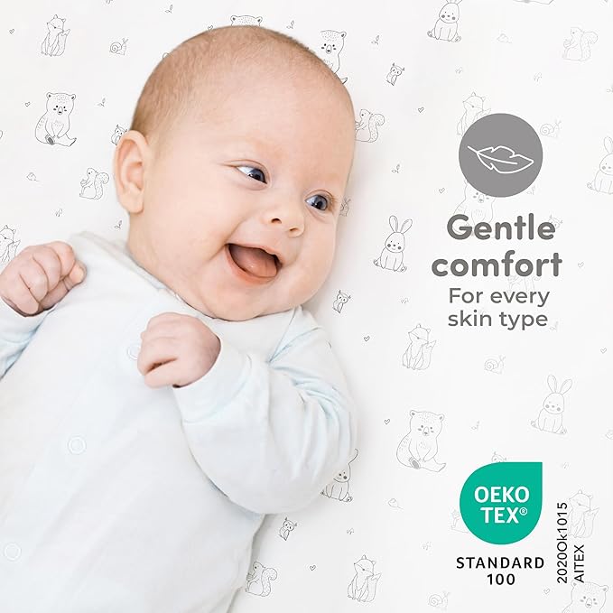 - Soft & Gentle on Baby’s Skin: Crafted from 100% premium jersey cotton, these crib sheets offer a soft and breathable surface, ideal for keeping your baby comfortable during sleep. The fabric is gentle on even the most sensitive skin, making it perfect for newborns and toddlers alike.