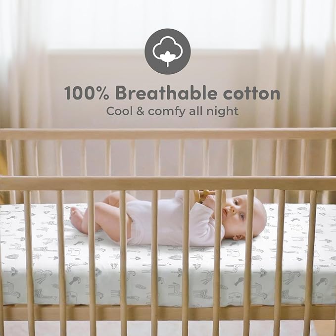 - Perfect Fit for All Crib Sizes: Each set includes two crib sheets that are designed to perfectly fit standard crib mattresses (52” x 28”) as well as mini cribs and toddler beds. The sheets fit mattresses with a height of 3” to 8”, ensuring a snug and secure fit.