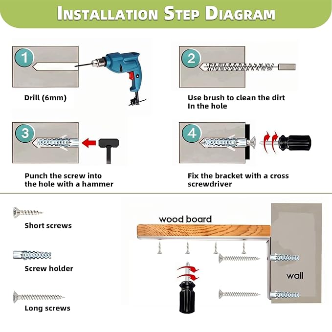 - ⚙️【Simple and Flexible Installation】: It comes with an ample supply of stainless - steel screws and metal expansion screws, ensuring easy and safe installation. With the help of a screwdriver and a drill, the installation can be quickly completed. It can be installed vertically or horizontally on the wall according to different furniture. It is suitable for various furniture finishing scenarios, convenient and practical. If there are any remaining parts, they can be easily stored