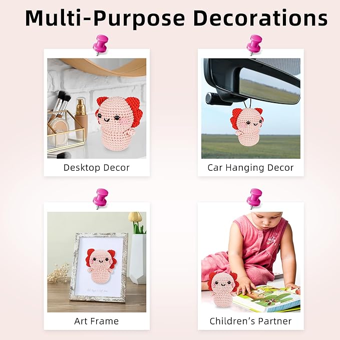 - ADORABLE AXOLOTL DESIGN – FUN FOR AGES 12+: The crochet kit for beginners kids includes a delightful axolotl pattern, which is popular and loved by both children and adults. This amigurumi crochet kit provides hours of fun and creativity, resulting in an adorable keepsake. It's not only a fun project to make but also a wonderful gift idea or cute decoration for your home.