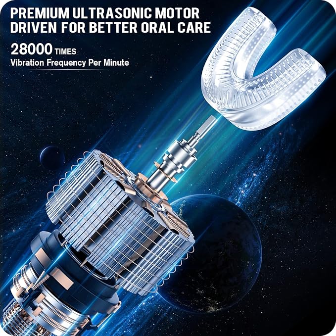 Ultrasonic Kid's U-Shaped Electric Toothbrush, IPX7 Waterproof, Five Cleaning Modes, 60S Smart Reminder (Cartoon Astronaut,Blue Ages 2-6)