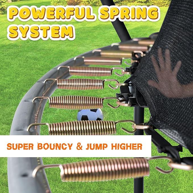 - 【Easy to Install】Easy assembly, joyous start right away! The package includes all necessary accessories for trampoline installation, and the installation guide is easy to read and understand, you can swiftly and easily assemble the trampoline. Our design team fully considered the convenience of trampoline installation during the design process so that your child can indulge in the joy of bouncing without any significant waiting time.