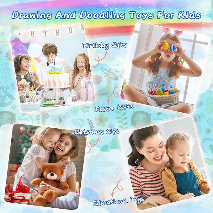 - 🎨Childrens Drawing Magic Book--Kids Erasable Doodle Book Set is 8.6*8.2*0.7 in. Easy to store and carry, perfect for children's school bags. Keep your kids quiet and busy while you travel and enjoy your trip to the fullest!