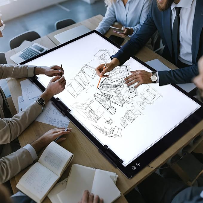 - 【 Eye-Caring Illumination 】 Prioritize comfort in your creative process with the tracing Bright light pad. Emitting 3 colors light up to 3000 Lux and maintaining a color temperature of 3000k-6500K, this light box tracer for tracing eliminates shadows and glare, preventing eye strain and fatigue during prolonged work periods.