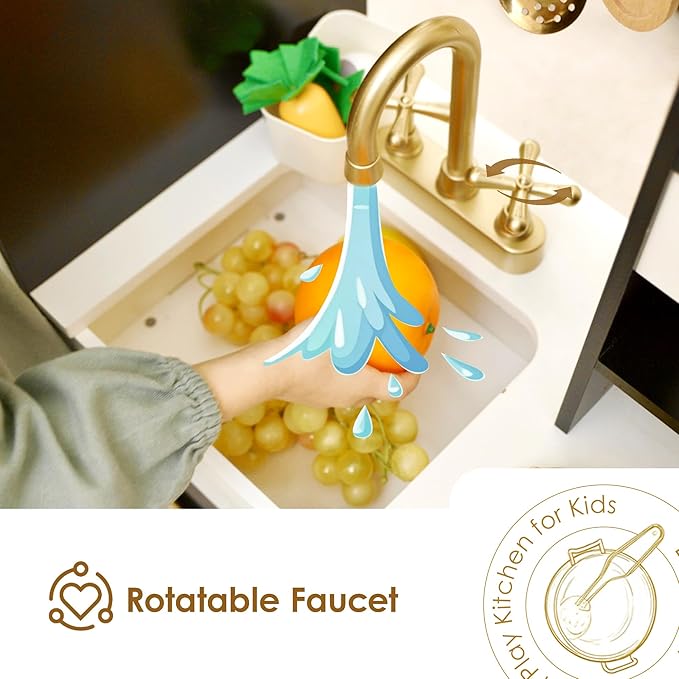 Interactive Montessori Kitchen Experience:spark imaginative role play with realistic faucet oven and ice maker—develops sensory and motor skills through hands-on activities for ages 3 and up