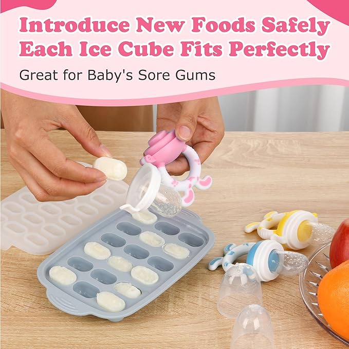- 【Teething Relief】:while our baby go through weaning and teething phase, Fill baby feeder pacifiers with frozen fruit to provide your baby with safely and naturally soothe sore, swollen gums.Our baby food pacifier feeder can prevent babies from biting or sucking their fingers.Fruit feeder helps protect children's oral hygiene.