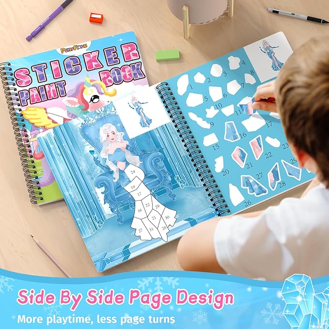 - LESS SCREEN TIME: From mesmerizing unicorn stickers, to beautiful frozen princess stickers, to incredible mermaid stickers, the PERRYHOME Paint by Sticker set offers a wide variety of choices to keep kids entertained and inspired.
