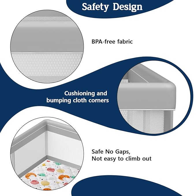 - 【PLAYPEN WITH MAT】This Jaobeem baby playpen comes with a thick waterproof and anti-slid mat, as well as with funny animal printed. Give your baby a funny comfortable game area to play and explore the world.