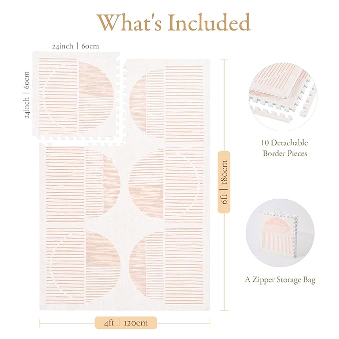 - 【LARGE AND THICKER FOAM PLAY MAT】The PopsyKosy playmat is a large and thick foam mat that comes with 6 interlocking tiles, each measuring 24"x24". The 0.5" thick padding provides a cushioned and safe play area for babies and toddlers, ensuring their comfort and safety during playtime. To maximize both the aesthetics and functionality of your play mat, choose a size configuration that covers the entire room/space.