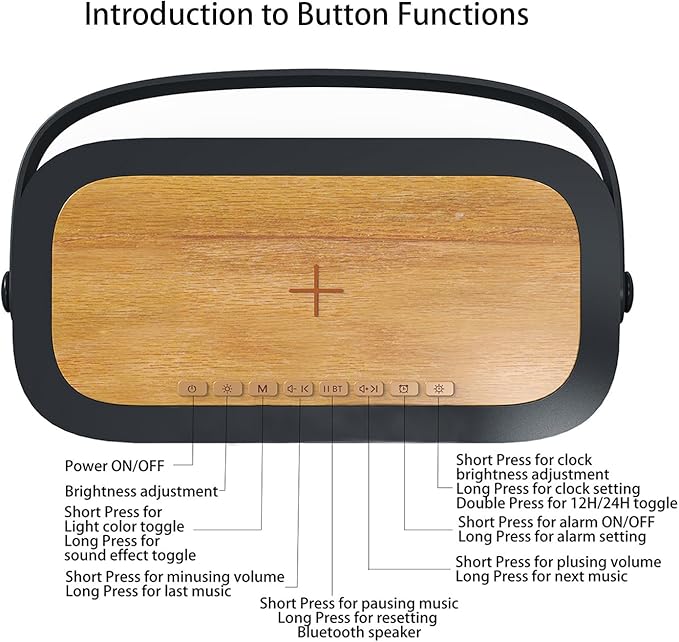- 【Enjoy the humanized Alarm Sound and Wake-Up Light Design】- Our alarm clock features a thoughtful design with both sound and light to gently wake you. The alarm tone gradually increases in volume while the wake-up light softly brightens, filling the room with a gentle glow. This ensures a peaceful transition from sleep, avoiding any sudden jarring sounds.