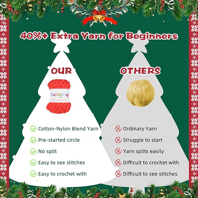 - BEGINNER-FRIENDLY COTTON-NYLON BLEND YARN & PRE-STARTED YARN: WaldyWop beginner-friendly cotton-nylon blend yarn is designed to resist splitting, making stitches easy to see. To help you get started smoothly, we’ve pre-crocheted the first round, reducing the initial difficulty and giving you a head start on your project.