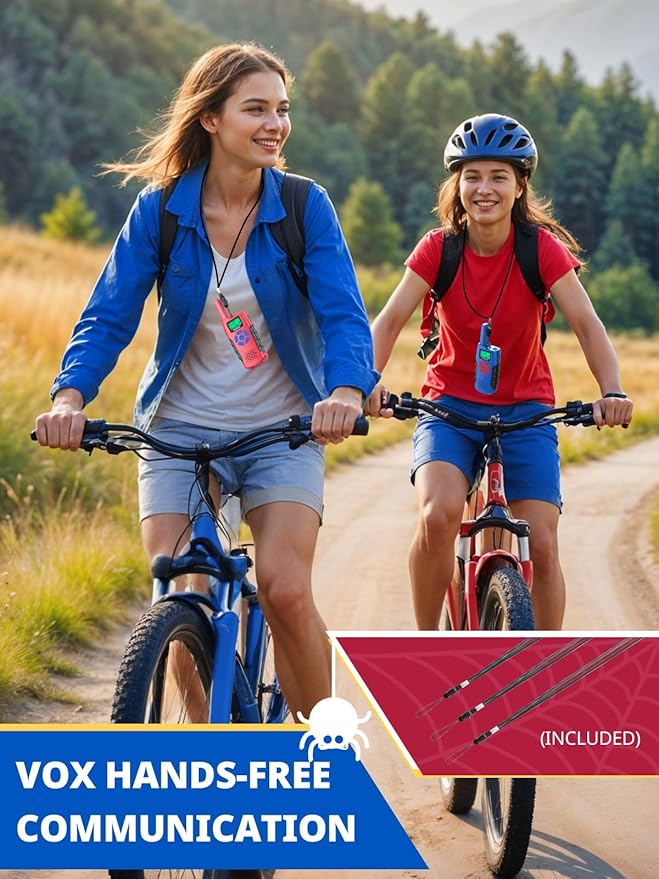 - Easy to use with hands-free VOX function, these walkie talkies feature a backlit LCD screen for visibility during both day and night. In addition to the push-to-talk feature, VOX mode allows kids to speak without pressing any buttons, which is great when riding bikes or playing outside.