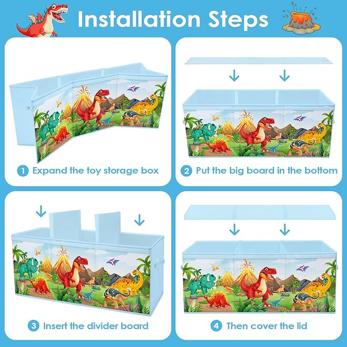 - 【Convenient Divider Design】 Our cube toy box is designed with a velcro flip lid, which helps to prevent dust from getting in, and there are two removable dividers in the center, which can be turned into different storage spaces, and large toys can be put, making it easy to reach for items.