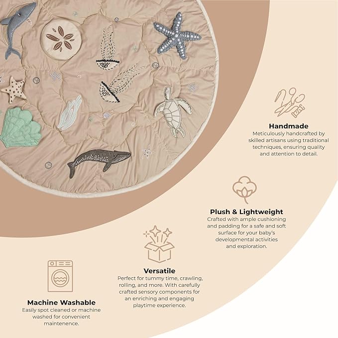 Soothing Sea Life Theme - Our sea life playmat is a perfect addition for either a baby boy nursery or baby girl nursery, and fits in seamlessly with any ocean nursery decor or under the sea nursery